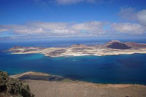 Lanzarote misst von Nord (Punta Fariones) nach Süd (Punta Pechiguera) rund 58 Kilometer und in der größten Ost-West-Ausdehnung 34 Kilometer. Mit einer Fläche von 845,94 Quadratkilometern hat die Insel einen Flächenanteil von 11,29 Prozent an der Gesamtfläche aller Kanaren. Südlich von Lanzarote liegt in 11,5 Kilometern Entfernung die Insel Fuerteventura, und im Norden etwa einen Kilometer entfernt der Chinijo-Archipel mit den kleinen Inseln La Graciosa, Montaña Clara, Alegranza, Roque del Oeste und Roque del Este. Von den insgesamt 213 Kilometern Küste sind zehn Kilometer Sand- und 16,5 Kilometer Kiesstrand, der Rest ist Felsküste. Auf der Insel gibt es zwei Gebirgszüge. Im Norden der Insel steigt das Famara-Massiv mit dem Gipfel Peñas del Chache auf 671 msnm an, und im Süden der Los Ajaches auf 608 m. Südlich des Famara-Massivs schließt sich die Sandwüste El Jable an, die das Famara-Massiv von den so genannten Feuerbergen (Montañas del Fuego) des Timanfaya-Nationalparks trennt. Im Timanfaya-Gebiet ereigneten sich zuletzt von 1730 bis 1736 und 1824 starke Vulkanausbrüche, die große Teile des fruchtbarsten Ackerlandes und mehrere Dörfer und Gehöfte mit zusammen etwa 420 Häusern unter sich begruben. Der Rest der Insel ist durch eine Hügellandschaft mit markant aufragenden Vulkankegeln geprägt. |