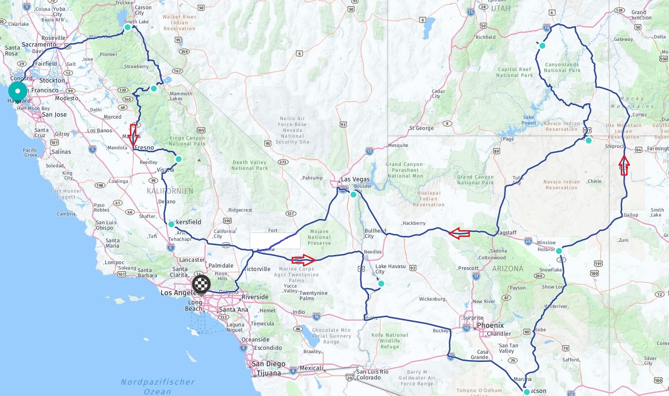 Ueber San Francisco weiter zum Lake Tahoe, Fresno, Phoenix, Tucson,