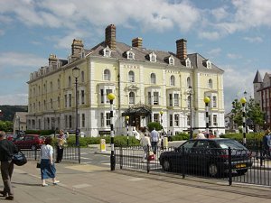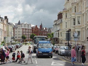 Llandudno ist das größte Seebad in Wales. Es liegt auf einer Halbinsel zwischen den beiden Bergkuppen Great Orme (207 m) und Little Orme (141 m) und besitzt einen Strand an der südwestlichen und einen größeren, sichelförmigen an der nordöstlichen Seite. Llandudno hat wie fast alle britischen Seebäder auch eine Pier, eine lange ins Meer hinausragende Seebrücke mit Läden und Vergnügungslokalen. Sie wurde 1878 gebaut und ist mit 572 Metern die längste in Wales. Im Sommer 1902 wurde die Standseilbahn auf den Great Orme eröffnet, dessen Gipfel vorher wegen seiner steilen Hänge für die Touristen kaum erreichbar war. 1969 wurde zudem eine Seilbahn gebaut. Nahe bei der Bodenstation im sogenannten Happy Valley befindet sich ein Park mit einem Besucherzentrum, sowie eine Kunstschnee-Skipiste, wo alljährlich die englischen Kunstschneemeisterschaften abgehalten werden. Eine etwa fünf Kilometer lange einspurige Einbahnstraße führt um den Great Orme herum. Dieser "Marine Drive" beginnt nördlich des Ortes an der "Happy Valley Road" und kostet 2,50 £ Maut. In vielen Kurven, stets das Meer zur Rechten, führt die Panoramastraße um den Berg herum und bietet immer neue Ausblicke auf die Irische See. Die einzige Parkmöglichkeit bietet ein kleines Café am Westufer des Berges. |