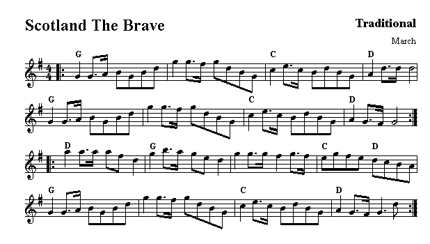 | 4. Hot as a burning ember, Flaming in bleak December Burning within the hearts Of clansmen afar! Calling to home and fire, Calling the sweet desire, Shining a light that beckons from every star! Chorus: |