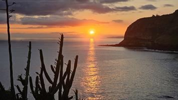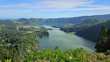 Auch der heutige Tag zeigte sich von der sonnigen Seite mit hohen Temperaturen. Heute ging es in den Westen der Insel. Unser erstes Ziel war heute der wohl bekannteste Aussichtspunkt der Insel den Miradouro da Vista do Rei. Er liegt auf dem Kraterrand des Vulkans mit einer unbeschreiblich schönen Aussicht über die beiden Seen Lagao Verde und den Lagao Azul, welche durch eine kleine Brücke getrennt sind. Unser Weg führte uns hinunter zu den Seen, über die Brücke und weiter zur Küste. Im Gegensatz zur Küste im Osten, ist die Westküste sehr dunkel durch das Lavagestein der Vulkane. Vorbei an kleinen Orten der Küste entlang, erreichen wir dann unser Hotel und gönnten uns eine Abkühlung im Pool. |