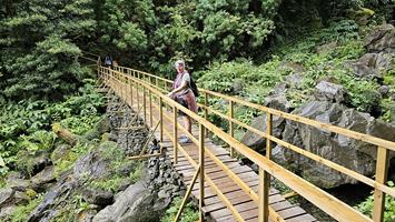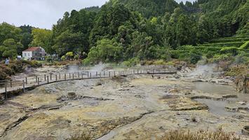 Auch heute war der Himmel etwas bedeckt mit zwischendurch etwas Regen, was uns nicht abhielt, zum Furnas See zu fahren. Bei den «Hotspring», wo wir am zweiten Tag waren, machten wir eine kleine Wanderung. Über kleine Brücken und rund 350 Treppen ging es hoch zu einem schönen Aussichtspunk. Auf dem Rückweg zum Hotel hielten wir an der Küste und genossen das Rauschen der grossen Wellen und die Luft des Atlantiks. Today the sky was a bit overcast with some rain in between, which didn't stop us from going to Lake Furnas. At the "Hotspring", where we were on the second day, we took a small hike. Over small bridges and about 350 stairs we went up to a beautiful view point. On the way back to the hotel we stopped at the coast and enjoyed the sound of the big waves and the air of the Atlantic. |