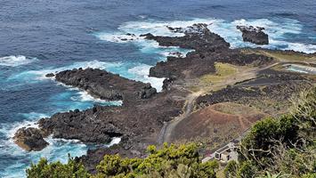 Da wir praktisch die ganze Insel gesehen haben, fuhren wir noch kurz der Küste entlang Richtung Westen. Unterwegs gibt es einen Parkplatz wo man einen Blick hat auf den Flughafen von Ponta Delgada. Weiter gibt es schöne Aussichtspunkt und ein schönes Haus mit einem Leuchtturm. Etwas weiter kann man mit dem Auto bis zum Meer hinunterfahren. Hier geniesst man einfach das Meer und die schwarze Küste bei einem kleinen Spaziergang. |