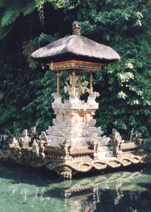 Bali und die Inseln östlich davon gehören zu den kleinen Sundainseln, die bis nach Timor reichen. Bali hat die Natur im Überfluß bedacht: Reisfelder und Reisterrassen, Palmenhaine, Bambuswälder, Bananenbäume, und dazwischen blüht es immerzu. Bali ist eine Insel der Kontraste: Eine Gebirgskette von West nach Ost trennt die Insel. Der Norden und Nordwesten ist gebirgig und eher karg, zerschnitten von Schluchten und Bächen. Bei der Insel Menjangan liegt ein phantastisches Tauchgebiet mit klarem Wasser und Korallenriffen. Gleich von der lavageschwärzten Küste geht es hinauf auf tausend, ja bis auf dreitausend Meter hohe Vulkane. Der Gunung Agung (3142 m) ist der höchste Berg der Insel; er gilt als heilig, auf ihm wohnen die Götter. Im März 1963 ist er ausgebrochen, kurz vor dem größten Tempelfest der Balinesen. 2500 Menschen starben, der Ostteil der Insel wurde weitgehend zerstört. Am Tempel Besakih jedoch gingen die Lavamassen seitlich vorbei. Das war nicht nur für die Balinesen ein Wunder. |