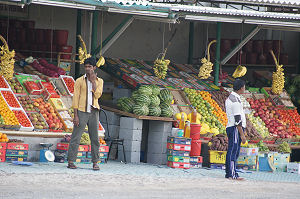 Am vorletzten Tag unserer Ferien in Dubai, entschieden sich Dani und Irene für einen entspannten Sonnentag an der Beach von Jumeirah. Da der Freitag in den arabischen Länder der Sonntag ist, wurden sie etwas überrascht von den vielen Leuten als noch ein paar Tage zuvor. Carol und ich machten einen Ausflug an die Küste vom indischen Ozean, genauer nach Fujairah. Die Autobahn führt quer durch die Wüste dann über eine Bergkette. Auf der Höhe gab es einen Freitagsmarkt mit vielen Fruchtständen und anderem. Nach etwa eineinhalb Stunden erreichten wir den Ort. Fujairah selber ist noch immer gross im Bau für den Tourismus. Nach dem Sonnenuntergang holten wir Dani und Irene vom Strand. Am Abend genossen wir bei einem Chinesen ein gutes Nachtessen und in der Hotelbar einen Drink.