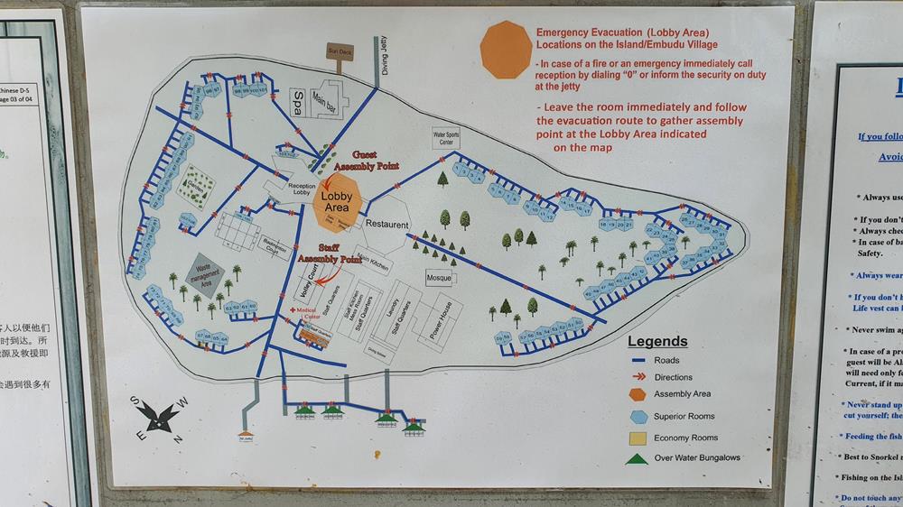 Wir haben unser Bungi 32 an der Westseite bezogen mit herrlichem Blick aufs Meer und den Sonnenuntergang. Wenn man schon das eine oder andere Mal hier auf den Malediven war, auf anderen Inseln wie wir, so war es doch etwas komisch im Norden die Hauptinsel mit Flughafen am Horizont zu sehen. Das Bungi ist einfach, sehr sauber und hat alles was es braucht. Da die Betten für uns doch etwas zu hart waren, brachten sie uns eine Auflage. Es war weicher und wir konnten gut und viel schlafen. Wir hatten Al gebucht - volles Programm. Das Essen war abwechslungsreich und sehr gut. Es gab Buffet ohne Selbstbedienung, was überhaupt kein Problem war. Man konnte so viel haben, wie man wollte und es hatte immer genug. Es war schon speziell, dass das Restaurant immer so gut wie leer war, denn wir waren ja in der Zwischenzeit nur maximal 25 Gäste von rund 250 möglichen. Bei der Happy Hour, beim Apéro oder nach dem Essen in der Bar, waren wir oft allein oder etwa vier bis sechs Leute, welche wir kennengelernt hatten. Da war Christian, Alex, Volker, und Claudia aus Deutschland. Natascha und Stefan, ebenfalls aus Deutschland, werden wir sicher mal in Deutschland oder in der Schweiz treffen. Ansonsten war die Bar leer, null Betrieb. Noch ein paar Worte zu den Covid-19 Regeln hier auf Embudu. Praktisch das ganze Personal auf der Insel trug eine Maske, den ganzen Tag. Einzelne Gärtner oder Techniker nicht. Was sie für Vorschriften haben, wollen wir nicht genauer hinterfragen. Für uns gab es zunächst keine Tragpflicht, doch nach eineinhalb Wochen auf der Insel musste man beim Betreten des Restaurants eine Maske tragen, die von der Insel abgegeben wurden. Bei der Bar und zum Restaurant immer Hände waschen und desinfizieren. Dies stand immer beim Eingang zur Verfügung. Auch gab es eine Quarantänezone, wo neue Mitarbeiter erst für zwei Wochen ausharren mussten, bevor sie raus an die Arbeit konnten. Zurzeit, als wir hier waren, befand sich ein Tauchlehrer in so einem Bungi für zwei sehr lange Wochen. Auf Abstand wurde geachtet, obschon die nicht schwierig war bei den wenigen Gästen. Es gab auch Gäste, die sich schwertaten und sogar solche die sich selbst am Buffet bedienten, doch dies wurde schnell unterbunden, auch wenn dies nur schwer akzeptiert wurde. Im Restaurant wurde einem ein Tisch zugewiesen, den man ändern konnte, aber nur maximal zwei Personen. Wir fanden es schade, dass all die Angestellten eine Maske trugen, denn man konnte ihr freundliches Gesicht und Lachen nie sehen. Auch Verstand man sie eher schlecht. Zwischendurch gab es schon den einen oder anderen, der sich seiner Maske mal kurz entledigte und wir ihn mal richtig zu Gesicht bekamen. Wir fühlten uns sehr sicher auf Embudu. We moved into our Bungalow number 32 on the west side with a wonderful view of the sea and the sunset. If you have been here in the Maldives a few times before, on other islands like us, it was a little bit strange to see the main island in the north with an airport on the horizon. The Bungalow is simple, very clean and has everything required. Since the beds were a bit too hard for us, they brought us a mattress pad. It was softer and we could sleep well and long. We had booked Al - full programme. The food was varied and very good. There was a buffet without self-service, which was no problem at all. You could have as much as you wanted and there was always enough. It was special as the restaurant was always almost empty, because we were only 25 guests at the most out of a possible 250. At happy hour, during the aperitif or after dinner in the bar, we were often alone or about four to six people. We met Christian, Alex, Volker, and Claudia from Germany in the first week. In the second week Natascha and Stefan, also from Germany, we will surely meet one day in Germany or Switzerland. Apart from that the bar was empty, zero operation. A few words about the Covid-19 rules here on Embudu. Practically all the staff on the island wore a mask all day long. Some gardeners or technicians didn't. There was no obligation for us to wear a mask at first, but after one and a half weeks on the island, when entering the restaurant, one had to wear a mask. Always wash and disinfect your hands at the bar and to the restaurant. This was always possible at the entrance. There was also a quarantine zone where new employees had to stay for a fortnight before they could go out to work. At the time we were here an instructor was in such a bungalow for two very long weeks. Distance was taken care of, although it was not difficult with the few guests. There were also guests who complained and even those who helped themselves to the buffet, but this was quickly stopped, even if it was difficult to accept. In the restaurant one was assigned a table that could be changed, but only a maximum of two people. We found it a pity that all the staff wore masks, because you could never see their friendly faces and smiles. It was also difficult sometimes to understand what they were saying – Speaking a foreign language through a face mask! Occasionally some removed their masks for a short time and we got to see them. We felt very safe on Embudu. |