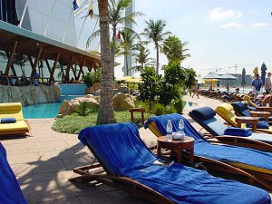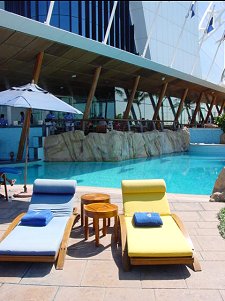 mit einem eindrucksvollen Blick auf den Außenpool und der Sonnenterrasse