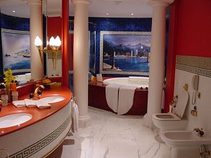 In allen 202 Suiten des BURJ AL ARAB ist Luxus der Begriff, der nicht die Zielsetzung, sondern den Maßstab für die Leistungen bildet, die den Gästen geboten werden. In allen Suiten sind sehr geräumig und umfassen zwei Ebenen, die durch eine elegante Treppe miteinander verbunden sind. Jede Suite verfügt über mindestens eine grosse Fensterfront mir Sicht aufs arabische Meer. Die luxuriöse Einrichtung übertrifft jegliche Vorstellungskraft! |