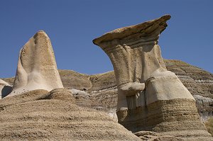 | Am heutigen Tag ging es etwas zurück in die Eiszeit. Wir besuchten den Dinosaurier Prov. Park etwas nördlich-östlich von Brooks. Wir machten da zwei klein Wandertrails für unsere Fitness und für das Allgemeinwissen. Weiter fuhren wir nach Drumheller dem Dinomekka, denn fast an jeder Kreuzung ist ein Dino zu sehen. Von Drumheller aus fuhren wir den Hoodoos-Trail, der uns nach Rosedale führte, wo eine berühmte Hängebrücke ist, welche wir auch überquerten. Natürlich machten wir das zu Fuss !!! Weiter ins Tal kamen wir dann zu den Natur-Skulpturen, den Erdpyramiden, auch Hoodoos genannt. Weiter auf dem Hoodoo Drive gab es noch eine alte Miene zu sehen. Auf dem Weg zu unserem heutigen Ziel Red Deer, bewunderten wir noch den Horse-Shoe Canyon. Es ist der kleine Grand Canyon von Kanada. So gegen 18.00 Uhr bezogen wir wieder mal ein Super 8 Motel in Red Deer. Today we went back in time to the ice age. We visited the Dinosaur Provincial Park north of Brooks. There we went on two short walks. Then it was on to Drumheller the dinosaur mecca, almost every junction in the town has a dinosaur statue! From Drumheller we investigated the curious Hoodoos – weather worn natural structures caused by the different layers of rock. In Rosedale we walked across the famous hanging bridge used by the miners before we were even born. There is also an old mine workings to visit. On the way to Red Deer we visited the Horse-Shoe Canyon – the small Grand Canyon of Canada. We reached our motel in Red Deer at about 18:00 |