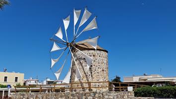 Als erstes besuchten wir heute den kleinen Ort Antimachia und seine Umgebung. Der Ort ist unweit vom Flughafen. Wir erreichten das Castel von Antimachia, wo uns der inoffizielle Burgwächter «Yannis» begrüsste. Man konnte von und mit ihm ein Foto machen, worüber er sich dann auf eine kleine Spende freute. Von hier hat man einen schönen Blick auf die Ebene und die Nordküste. Im Dorf selbst konnte man die restaurierte Windmühle besichtigen. Es ist die letzte von 50 die noch in Betrieb ist. 2,5 Kilometer weiter Richtung Kefalos biegt man ab nach Plaka. Im Pinienwald, auf dem Parkplatz, stellten wir unser Auto ab und wir waren fast umzingelt von vielen Pfauen, die sich bemerkbar machten. Sie lagen gemütlich da, sie gingen umher oder sassen gar auf den Bäumen. Am Nachmittag fuhren wir Richtung Kefalos ganz in den Westen. Am Ender der asphaltierten Strasse bogen wir ab zum Strand von nach Kavo Paradiso. Die Sandpistenstrasse war sehr holprig und zum Teil auch sehr steil. Die Fahrt lohnte sich für den Blick über die schöne Bucht und den dahinterliegenden Kap Krikelos. An der Strandbar gab es viel laute Musik und kaum Leute. Auf dem Rückweg zum Hotel noch ein paar Fotos von der schönen Umgebung. Sunday we visited the small village of Antimachia and its surroundings. The village is not far from the airport. We reached the castle of Antimachia, where the unofficial castle guard "Yannis" greeted us. You could take a photo of him, and he was happy to receive a small donation. From here one has a beautiful view of the plain and the north coast. In the village itself, one could visit the restored windmill. The only one which is still operational on Kos. 2.5 kilometres further on, in the direction of Kefalos, you turn off to Plaka. In the pine forest, in the car park, we parked our car and we were almost surrounded by many peacocks making their presence felt. They were lying comfortably there, walking around or even sitting on the trees. In the afternoon, we drove towards Kefalos, all the way to the west. At the end of the asphalt road we turned off to the beach of Kavo Paradiso. The sandy road was very bumpy and in parts very steep. The drive was worth it for the view over the beautiful bay and Cape Krikelos behind it. At the beach bar there was a lot of loud music and hardly any people. On the way back to the hotel, a few more photos of the beautiful surroundings. |