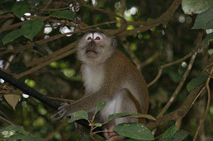 | Am Morgen erkundigten wir uns noch nach dem genauen Weg in den Regenwald National-Park Taman Negara. Die Fahrt dauerte knapp vier Stunden bis wir Kuala Tahan erreichten. Die Strassen waren recht gut, ob schon es den einen oder anderen Abschnitt gab der etwas eng und auch sehr kurvig war. Auch bekamen wir schon die ersten Affen zu sehen, welch sich da am Strassenrand aufhielten. In Kuala Tahan angekommen, hiess es erst mal das Gepäck zum Boot zu bringen, welches uns dann zur Hotelanlage “Mutiara Taman Negara Resort” brachte. Das Wetter war bewölkt und sehr warm. Die Kleider waren nass, so dass man sie ausdrehen konnte. Wir bezogen unser Chalet im Dschungel und machten uns auf Entdeckungsreise. Nach kurzer Zeit machten wir Bekanntschaft mit mindestens zehn Affen die sich hier herumtrieben. Später gingen wir dann duschen um uns für das Nachtessen bereit zu machen. Was natürlich auch fast dazu gehörte ist der tropische Regen, welcher aber nicht lange anhielt! After asking for directions to the National Park which we got in minute details! We headed off and 4 hours later we reached Kuala Tahan. The roads are fairly good although quite twisting and full of lorries. On the way we saw our first monkeys playing on the road side! We parked the car in Kuala Tahan and unloaded our bags for the boat trip across the river - this is the only way into the Rain Forest. On the other side our bags were hoisted up on a trolley system while we climbed the steep stairs. Our hotel Mutiara Taman Negara Resort was just at the river crossing so we hadn’t far to go to check in. After finding our room we walked around the hotel grounds where we soon found more monkeys in the trees. After showering and changing we headed off for dinner and more tropical rain storms which don’t last long but are very heavy. |