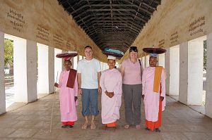 Hier in Myanmar bekommt man so viel an Kultur und Eindrücke zu sehen, dass man schon einige Zeit benötig dies alles zu verarbeiten. Was auch sehr toll war, die Begegnungen mit den Menschen. Seien es nun Nonnen, Mönche oder andere Leute. Unser Reiseleiter Aung tat viel um uns mit den Einheimischen näherzusammen zu bringen. Sie waren immer sehr herzlich und offen. Man konnte die Freude in ihnen richtig sehen. Ich hoffe, dass dies auch in Zukunft so bleiben wird, wenn dann vielleicht mal der Massentourismus Einzug hält. Dies sind bewegende Momente, an die wir noch lange denken werden, wenn wir unsere Fotos anschauen oder davon erzählen. Here in Myanmar there is so much culture to see and so many impressions that you need time to work through them all. The people here are very friendly and interested in everything, whether they are monks, nuns or the ordinary people. Aung our guide was always trying things to get us closer to the Myanmar people. They were always welcoming and open although they have a certain amount of shyness and respect. They really enjoy living. Hopefully that will stay so even as more and more tourists come to visit. It is all very moving and thoughts that will stay a long time. |