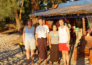 Wie bereits schon erwähnt, sind wir meistens für das Mittag- und Abendessen auswärts gegangen. Das Essen im Hotel ist gut aber im Verhältnis sehr teuer. Nur ein paar Schritte hinter dem Hotel gibt es rund fünf kleine Restaurants. Hier ist das Essen sehr gut und sehr preiswert. Man muss auch gerne Fisch haben, denn Pork und Chicken gibt es nur sehr spärlich. Wir waren im Mingalarba und im Tonys Family Restaurant. Unser Favorit war Tonys, denn es ist familiärer und auch sehr persönlich. Er selber spricht mit den Gästen (englisch) und kennt die Leute wenn sie wieder kommen. Mit ihm haben auch den Elefantenausflug unternommen. Auch hat er mir auf meinen USB-Stick einiges an einheimischer Musik mit nach Hause gegeben. Am Mittag und zum abendlichen Apero, sind wir meistens zum Strandbeizli „Sea Lady“ gegangen, dass nur gerade fünf Minuten vom Hotel entfern war. In den Restaurants kann man für rund sFr. 12.- zwei Menü bestellen eine Flasche Bier und zum Bier gibt es immer Erdnüsse dazu. Eine Büchse Cole kosten rund 1.20. und im Hotel 4.80!!! Nur noch zum Vergleich, so haben wir in Mandalay und in Yangon für denselben Preis zu dritt oder auch zu viert gegessen. Am Strand zum Beispiel, bei den Früchteverkäuferinnen kann man fünf Bananen habe für gerade mal sFr. 0.60, also ist dies schon fast geschenkt. Was aber alles übertraf, war der Myanmar Rum. Im Hotel kostete ein kleiner Schluck sFr. 2.40 und im Laden eine 7 dl Flache gerade mal sFr. 1.80. Natürlich nahmen wir eine mit nach Hause:-) Most lunch times and evenings we went to a restaurant outside the hotel. The hotel has a good restaurant but in comparison to the other restaurants relatively expensive. Just across the road there are 5 small restaurants – very good and very reasonably priced. As we were at the coast fish and seafood was the main part of all the menus with occasionally chicken and very occasionally pork. We ate at Mingalabar and Tony’s Family restaurant our favourite being Tony’s. It is run by the whole family – Tony being the son in law! Tony also took us on the elephant trip. Our sunset drink we had mainly on the beach at the Sea Lady restaurant. A meal for two costs us around £8 with drinks. Inland we could eat for 3 or 4 people for this price. What amazed us was the beer prices. In the shops a bottle costs 1200 Kyat. In most restaurants 2000 and in the hotels up to 8000!! We bought 5 bananas on the beach for about 40p. There is a Myanmar rum that costs 1500 Kyat for 700 ml which the hotels charge at least 2000 for a very small glass! |