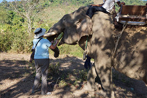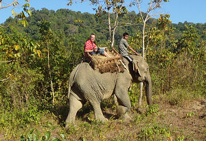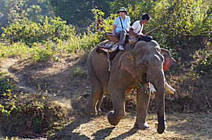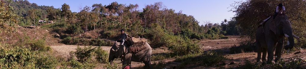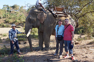 Auf der anderen Strassenseite von unserem Hotel hat es verschiedene Restaurant in denen man sehr gut essen kann. Wir sind praktisch jeden Abend in einem dieser Restaurants gewesen. Das Essen war sehr gut und auch sehr, sehr günstig und die Portionen waren auch nicht ohne. Eines davon war das Family Restaurant, das von Tony geführt wurde. Hier sind wir am meisten gewesen. Tony hat uns dann auch darauf gebracht einen kleinen Elefanten Trip zu machen. Er organisierte dies und brache uns mit dem Töff ins Landesinnere. Nach einer munteren Fahrt auf holprigen Pisten, erreichten wir den Platz, wo die beiden Elefanten für und bereits bereit standen. Bevor es losging, konnten oder mussten wir die beiden erst füttern. Wir bestiegen die Dickhäuter und los ging die kleine Tour durch den hiesigen Dschungel. Nach etwa 45 Minuten erreichten wir unser Ziel und es ging mit dem Töff wieder zurück zum Restaurant. Es war ein schönes Erlebnis mit grossen Tieren. Across the road from the hotel there are several small restaurants where the food is really good. We have visited one of these almost every evening. The food was not only very good but very reasonably priced. One of these is called Family Restaurant, run by Tony, which also offers tours. We decided to take an Elephant trip. We were picked up from the restaurant by motorbike which took us on some very bumpy tracks! When we reached the elephants we had to feed them before we could set off! We then climbed aboard and set off for a 45 minute ride through the edge of the jungle. We returned to the restaurant by motorbike. A wonderful experience with these big animals! |