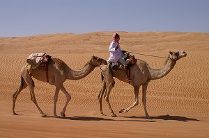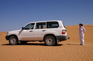 Heute ging es weiter durch das Landesinnere via Birkat Al Mawz nach Sinaw. Hier findet täglich ein sehr interessanter Beduinenmarkt statt, welcher am interessantesten an Wochenenden ist. Kamele, Ziegen, Schafe, getrockneter Fisch und grosse Dattelsäcke werden hier gekauft und verkauft. An diesem Tag mussten wir längere Strecken fahren, bis wir dann nach Mintrib kamen. Hier mussten wir den Reifendruck auf verringern um danach in der Wüste im Sand gut voran zu kommen. Nach zwei Kilometer gelangten wir in die fantastische Wüste Wahiba Sands. Im Gegensatz zu den Sanddünen der Rub al-Khali wandern die Dünen der Wahiba Sands kaum. Unter den sandigen Oberfläche befinden sich versteinerte, so genannte äolische Geländeformationen, die durch Windeinwirkungen entstanden sind. Es war ein tolles Erlebnis alleine in der Wüste herum zu fahren. Wir erreichten kleines Beduinendorf, bis wir dann wieder zurück fuhren nach Mintrib um den Reifendruck wieder Strassen und Schotterpisten tauglich zu machen. Anschliessend erreichten wir das Wadi Bani Khalid. Es gilt als eines der fruchtbarsten und landschaftlich abwechslungsreichstes im Oman mit Wasserfällen, Kalksteinhöhlen und tiefen, Wasser führenden Flussläufen. Schliesslich kamen wir in an der Küste in Sur an, wo wir mal wieder ein anders Hotel bezogen, das Sur Plaza Hotel. |