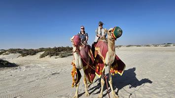 Heute war ein Tag, wo wir selbst nicht mit dem Auto unterwegs waren. Am Vormittag spazierten wir an der Al Cornich und weiter zum Old Doha Port. Hier gibt es kleine Läden, Cafés und Stände. Auch gab es einen Tim Hortons. Hier konnte ich nicht vorbei ohne einen Kaffee und zwei Boston Creme Donuts. Nach dem Mittag wurden wir von einem Guide in seinem Jeep abgeholt. Wir fuhren in den Süden in die Wüste. Beim ersten Halt ging es erst mal für ein paar Minuten auf ein Camel und kurze Zeit später hatten wir einen Falken auf unserem Arm. Dann ging es los mit einer Dünenfahrt quer durch die Wüste bis zum Sonnenuntergang. |