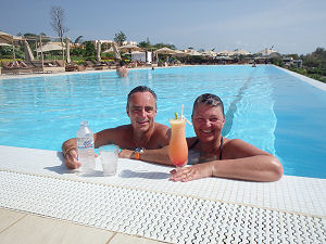 In diesen Tagen war nur Pool und Meer angesagt. Wir liessen uns vom sehr netten Personal verwöhnen und genossen das Nichtstun. Das Wetter war sehr abwechslungsreich. Es war immer sehr war bei bewölktem Himmel. Zwischendurch mal ein paar Tropfen Regen welche auch nicht schlimm waren. Durch den, zum Teil, starken Wind, war auch das Meer unruhig mit zum Teil grossen Wellen. Zwischen durch ein kleinen Spaziergang am Meer um uns auch die Beinen zu vertreten, denn man konnte ja nicht den ganzen Tag nur im Liegestuhl liegen. Wie gesagt, Entspannung pur! We relaxed doing not very much for 2 days by the pool and on the beach. We had very mixed weather – always very warm but sometimes completely clouded over and sometimes brilliant blue skies and occasional a few ‘large’ drops of rain. Sometimes the wind was very strong which led to a rough sea with some quite high waves. We also used the time to explore the beach. |