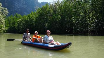 Heute hiess es sehr früh aus den Federn für unseren zweiten Ausflug. Wir wurden bereits um 04.30 Uhr im Hotel abgeholt. Die Fahrt mit dem Auto dauerte knapp eine Stunde. Unterwegs besorgte unser Fahrer, der zugleich auch unser Guide war für heute, noch was Kleines zum Frühstück. Am Pier angekommen dann das Frühstück und ein Café. Später ging es auf ein Longtail Boot. Wir hatten das Boot für uns, da wir eine private Tour gebucht haben. Nach rund 45 Minuten erreichten wir die Insel Khao Phing Kan, auch bekannt als James Bond Island vom Bondstreifen “Der Mann mit dem goldenen Cold”. Wir waren heute die ersten Touristen auf der Insel und dies mit einem tollen Sonnenaufgang. Nachdem wir die Insel erkundeten und uns zum Boot begaben, kamen breit zwei Speedboote mit je rund 30 Personen. Um 10.00 Uhr soll die Insel weit überfüllt sein mit Touristen. Wir steuerten unser nächstes Ziel an, die Panak Island. Als wir an Land gingen wurden wir von ein paar wilden Makaken Affen empfangen. Ein kurzer Gang durch ein Cave, das mit knöcheltiefem Wasser war, erreichten wir das inner der Insel das oben offen war, als wäre man in einem Krater. Unweit bestaunten wir ein weiteres Cave auf derselben Insel. Bei der Hong Island angekommen, hiess es dann umsteigen in ein Sea Canoe. Wir genossen die Fahrt durch die Sea Caves der Insel und schossen dabei unglaublich Fotos. Auf der Rückfahrt besuchten wir noch ein Cave und machten noch eine Sea Canoe Fahrt durch die Mangroven von Thailand. Es war einfach traumhaft und inzwischen auch schon sehr heiss. Nun ging es zurück aber noch nicht ganz, denn uns erwartete noch ein Mittagessen in Ban Sam Chong Nua. Das Essen war der absolute Hammer, wenn man Thaiküche gernhat. Anschliessend erreichten wir unser Pier von heute früh, wo es dann mit dem Auto zum Hotel ging. Wir waren um 14.30 Uhr, zwar etwas müde, im Hotel aber mit einem unglaublichen Erlebnis im Gepäck. Er war einfach toll und das frühe Aufstehen hat sich mehr als nur gelohnt. We got up very early for this trip as we wanted to beat all the tourists. We were collected at 4.30am from our hotel lobby. An hours drive brought us to the pier where our longtail boat was waiting for us. On the way our guide had stopped to collect breakfast for us. This was various steamed rice packets one with custard, one with coconut milk and one with banana. There was also a sort of pancake all washed down with coffee. Well breakfasted we clambered on board. As this was a private tour there we just us 2 the guide the boat captain and a canoe man who we collected on the way with his canoe. After about 45 minutes we reached the James Bond Island - its real name is Khao Phing Kan Island and became famous in the Bond film The Man with the Golden Gun in 1974. We were the first tourists on the island and could enjoy a lovely sunrise in peace. We then had time to explore the island. As we were leaving 2 speed boats arrived with 30 - 40 people on each! By 10.00am the island is apparently full. Our next destination was Panak Island. Here we were met by a few wild Macaque monkeys. We walked through a tunnel, in places the water was ankle deep into the middle of the island which was open - a bit like a crater. At high tide you visit this by canoe through the same passage we walked through but in a canoe. As it was low tide it was only mud in the middle and we could amaze at the walking fish! We visited another cave on the same island with many stalactites and stalagmites. At Hong Island we transferred from our boat into the canoe - at sea - here we were taken into some sea caves and inlets. Wonderful. Not sure how many photos we took! We then headed back towards the pier from where we had started. On the way we visited another cave which was a warm as a sauna as it only has one outlet. Here there were also some magnificent formations. These caves are pitch black but fortunately we were provided with lamps. Another go in the canoe through mangrove swamps rounded off the trip. We had lunch before we finally returned at a village built on stilts called Ban Sam Chong Nua. A really delicious Thai banquet. After a short stroll through the village we set off back to collect the car. We arrived back at the hotel at 2.30pm very tired but full of many wonderful memories. A great experience will worth getting up so early for. |
