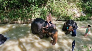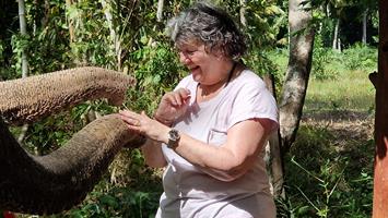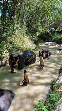 Unser erster Ausflug war gleich was spezielles. Es ging um Elefanten und Baden. Wir wurden kurz nach dem Mittag vom Hotel abgeholt. Wir war nur sechs Personen auf dem Ausflug. Die Fahrt mit dem Kleinbus dauerte 45 Minuten. Noch etwas ins Landesinnere und wir waren am Ziel, wo wir dann auch schon von drei Elefanten begrüsst wurden. Bevor es aber ins Wasser ging, wollten die Elefanten erst mal von uns reichlich gefüttert werden. Bananen hatte es genug. Anschliessend hiess es dann Kleider weg Badekleider an und ab ins Wasser, wo uns die grossen Tiere bereits schon erwarteten. Gemütlich lagen sie da und warteten darauf mit Lehm geschruppt und gewaschen zu werden. Es machte viel Spass auch dann wenn es eine kleine Dusche aus einem Rüssel vom Elefanten gab. Etwas später gab es für uns Getränke und reichlich frische Ananas, bevor es dann zurück zum Hotel ging. Wahrlich ein Erlebnis.
