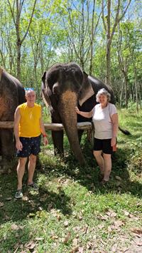 Our first excursion was something special. It was about elephants and bathing. We were picked up shortly after noon from the hotel. We were only six people on the trip. The trip with the minibus took 45 minutes. A little further inland and we were at our destination, where we were greeted by three elephants. But before we went into the water, the elephants wanted to be fed by us. There were enough bananas. Afterwards we took off our clothes, put on our bathing suits and went into the water, where the big animals were already waiting for us. They lay comfortably there and waited to be scrubbed with clay and washed. It was a lot of fun even if there was a small shower from a trunk of the elephant. A little later we had drinks and plenty of fresh pineapple before heading back to the hotel. Truly an experience.
