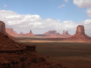 Heute hiess es mal wieder früh aus den Federn, denn um 06.00 Uhr ging es zum Monument Valley. Hier ist man mit der Zeit eine Stund voraus. Man kennt das Monument Valley aus Filmen und Werbespots, doch in natura ist alles gewaltiger und beeindruckender. Das Wetter schien zu halten. Es hatte etwas mehr Wolken, aber auch Sonne. Mit unserem Auto fuhren wir die 17 Meilen lange und sandige Strecke durchs Monument Valley. Es gab auch Touren, aber viel zu teuer. Später nach diesen Eindrücken machten wir noch einen Abstecher zu den National Bridges Park im White Canyon. Dieser NP ist bekannt durch die vom Wasser heraus gespülten Steine, welche dann heute eine Steinbrücke bildet. Gegen Abend, auf der Rückfahrt, hatten wir zum ersten mal etwas Regen. Mit 422 Meilen war es einer der längsten Strecken mit dem Auto. Today was another early start, at 06:00 we left for Monument valley. This is well known from the films and advertisments. The weather looked like it was going to hold although we had more clouds than before. We drove the 17 mile unmade road through Monument Valley – there are tours but these are fairly expensive. Later we made a detour to Natural Bridges National Park in White Canyon . The bridges are formed by water washing our the stone. On the way bak we got our first rain – but not much. We clocked up 422 miles in one day – our record. |