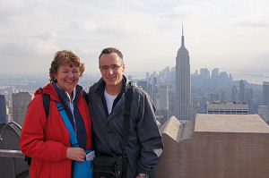 We got up early – due to the time difference and found a cafe for breakfast. We decided to walk to Ground Zero but before we got there we saw the Brooklyn Bridge and walked over that instead. There are some good views of Manhattan from Brooklyn. We took the Subway back to Battery Park at the southern tip of Manhattan. To get a boat out to the Statue of Liberty costs $12 and a long wait. We decided not to go! Instead we took the free Ferry to Staten Island which passes quite close to Liberty Island so we could get the photos we wanted. Returning to Manhattan we then walked to Ground Zero which is now one big building site. There is a 9/11 Memorial display which was quite moving. There is also a church St Pauls which amazingly survived and was used as a base by the rescue services to sleep. After lunch we took the subway to Grand Central Station – the largest in Manhattan. Very impressive with marble floors. The Rockerfeller Center also has a viewing platform Top of the Rock on the 70th floor which we just had to do. We were lucky the sun decided to show itself. A beer in a bar on Times Square rounded off the day then we headed back to the hotel via Subway.