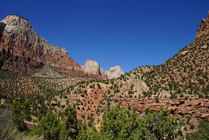 Leider hiess es schon wieder Abschied nehmen von der Lake Powell Region. Es ist und bleibt für uns einer der schönsten Orte im Westen der USA. Bevor es richtig los ging in Richtung Zion Nationalpark, betankten wir unseren Wagen und befreiten ihn vom vielen Sand und Staub, nach der gestrigen Off Road Tour, unter der Waschanlage. Unterwegs noch ein Kaffee in Kanab, bevor wir dann den Zion NP. erreichten. Das Wetter war wiederum super aber viel zu heiss um hier die eine oder andere Wanderung zu unternehmen. Wir hatten Spitzentemperaturen von 38 Grad. Doch zu einem kurzen Fussweg liessen wir uns doch hinreissen. Ein Aufstieg zu den kleinen Hoodoos. Auf einem der vielen Rastplätze machten wir Halt um was Kleines zu Essen – natürlich im Schatten. Nach dem Besuch des Visitor Center fuhren wir weiter nach St. George, wo wir übernachteten. Das Motel Clarion hatte einen Pool, den wir natürlich so rasch wie möglich aufsuchten um uns abzukühlen von den hohen Temperaturen. Später gingen wir zum nahegelegenen Black Bear Diner für das Nachtessen. Wir hatten ein richtig gutes Steak! Today we had to unfortunately leave Page and Lake Powell behind. It is one of the most beautiful places for us in the west of America. Before we headed off for Zion National Park we filled up with petrol and took our jeep through a car wash to get rid of the sand and dust after our dirt track drive yesterday. We stopped for coffee in Kanab before we reached Zion Park. We had yet again superb weather. The highest temperature was 38C with clear blue skies. Much too hot to walk too far. Although we walked up a small sandstone hill to see some Hoodoos. We had a picnic lunch in one of the rest areas – a nice shady one. After going round the visitor centre we set off for our destination for the night – Saint George. Our motel Clarion had a pool which was very welcoming after the heat of the day. Later we went to the Black Bear Diner for a really good steak. |