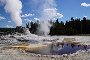 Nach dem wir unser Frühstück hatten in unserem Motel Super 8 und unser Wagen vollgetankt war, fuhren wir los nach West Yellowstone. Hier ist der Westeingang zum Yellowstone Nationalpark. Für den Mittag noch was vom Supermarkt bis es dann in den Park ging. Nach rund 55 km erreichten wir den wohl bekanntesten Ort, Old Faithful. Dies ist einer der bekanntesten Geysire der Erde. Er ist ein düsenförmiger Geysir und befindet sich im oberen Geysir-Becken des Yellowstone-Nationalparks im Bundesstaat Wyoming. Seine Eruptionen treten häufig und regelmässig auf. Von hier aus gibt es einen Trail den man nicht verpassen sollte. Er ist etwas 4,5 km und ist voll von Geysiren. Hier sollte man wirklich genug Zeit einrechnen, da es zumal ein Fussweg ist und zu anderen sich viele tolle Motive aufdrängen um fotografiert zu werden. Im Verlaufe des Nachmittags machten wir uns wieder auf den Weg zum Westeingang. Auf dem Weg machten wir noch den einen oder anderen Stopp um andere Geysire zu bewundern. Nebst anderen Tieren sahen wir auch Coyote und Bisons. West Yellowstone war auch unser Ziel für heute. Währen dem Nachtessen zog auch ein heftiges Gewitter auf. Wir mussten uns beeilen um nicht völlig durchnässt im Motel anzukommen. Buhhh….es hat gereicht! After breakfast and filling up with petrol we set off for West Yellowstone. This town is the west entrance to Yellowstone National Park. We bought a picnic lunch in a supermarket then went to the park entrance. Here we showed our America the Beautiful park pass which we had bought yesterday at Craters of the Moon Park and set off on the 30 mile drive to Old Faithful. This is the best known geyser in the park and is a cone form one. It erupts regularly approximately every 90 minutes. From here there is a board walk just over 2 miles long which is a good way to see some different types of geysers and springs. Late afternoon we headed back to the west entrance, stopping on the way to admire more geysers. It’s quite fascinating to see the steam just coming out of holes in the ground! We also saw several animals some of which were Bison and coyotes. We found our motel in West Yellowstone, whilst we were having dinner a large storm came up and we luckily just made it back before we got wet through! |