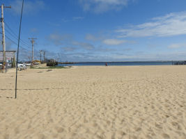 Etwa um acht fuhren wir los in Richtung Süden. Das Wetter wurde besser und auch die Sonne liess sich blicken. Doch der Wind war immer noch sehr frisch. Ab vom Highway fuhren wir entlang der Küstenstrasse zur Halbinsel Nantasket. Von hier aus sah man auch die Stad Boston. Etwas weiter errichten wir den schönen Ort Plymouth. Hier steht normalerweise das Galionsschiff Mayflower II. Ein Nachbau welche den Atlantik im Jahre 1620 überquerte in 66 Tagen. Über die Wintermonate und wegen Restauration war sie nicht im Hafen. Letztes Mal als wir hier waren konnten wir sie bestaunen. Später fuhren wir über die Sagamore Bridge, welche das Festland mit der Insel Cape Cod verbindet. Unterwegs auf Cape Cod gab es das erste Fischgericht zum Mittagessen. An der Nordspitze der Insel ist der Ort Provincetown mit seinen schönen Sandstränden und kleinen Sanddünen. Im Süden der Insel ist der kleine Küstenort Dennis Port, wo wir übernachteten im Motel Pelham direkt an der Küste. At about 8:00am we left Boston heading south. The weather improved and we actually had some sunshine. However, the wind was still strong and cool. We left the highway and drove along the coast to the Nantasket peninsula. Here we got some good views of Boston. Further on we visited Plymouth where the Pilgrim Fathers landed with the Mayflower. There is a replica of the Mayflower which was not in port as it was being repaired. After coffee we headed again southwards and over the Sagamore Bridge onto Cape Cod. Naturally we had to have fish for lunch. We drove along the island to the northern point to Province Town. Here there are some lovely sandy beaches and sand dunes. Returning to the southern part of the island we checked in at our motel in Dennis Port right on the coast. |