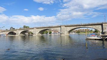Heute stand uns ein Tag bevor ohne grossen Höhepunkten, aber mit etwas vielen Kilometern. Unser Ziel heute war Lake Havasu City im Bundesstaat Arizona. Doch bevor es losging mussten wir erst Benzin tanken und wir gingen durch die Waschanlage um den ganzen Stab vom Auto los zu werden von den letzten Tagen. Etwa nach 90 Minuten Fahrt erreichten wir den Ort Mojave. Hier ist die U.S. Edwards Air Force Base. Wir kamen bis zum Visitor Infocenter und nicht weiter, weil wir da keine Verwandten haben…. Inzwischen wurde auch der blaue Himmel von Wolken gedeckt und es gab ein paar wenige Tropfen Regen und dies bei 42 Grad. Unterwegs machten wir einen Cafistopp an der berühmten und historischen Route 66 in Ludlow. Gegen 16.00 Uhr erreichten wir unser Motel in Lake Havasu City. Zimmer bezogen und schon waren wieder weg. Zu Fuss, bei dieser Hitze, spazierten wir zu London Bridge und genossen auf der anderen Seite eine Happy Hour. Ein feines Nachtessen gab es dann im “Black Bear Diner”. Today was to be a day of many miles (kilometres) and not so much tourist attractions but there was even so a lot of impressions to take home. We were heading for Lake Havasu City in Arizona. First we had to fill up with petrol and take our very dusty car through car wash. After 90 minutes drive we had reached the small town of Mojave. The U.S. Edwards air force base is here. We got as far as the Visitors Info Center but had to turn back as we didn't know anybody on the base…. Our blue skies had become a bit cloudy by this time and we had 6 drops of rain which just evaporated as it was 42C. We stopped for coffee in Ludlow on the famous Route 66. Towards 4.00pm we arrived at our motel in Lake Havasu City. After checking in we set off on foot despite the 40++ degrees (109F in old money) to London Bridge and enjoyed Happy Hour on the “Island”. Dinner we enjoyed later in the Black Bear Diner. |