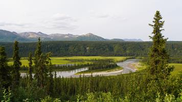 Heute, an einem leicht bewölkten Tag, fuhren wir nochmals in den Denali N.P. Auch hier im Park gibt ein einen Aussichtspunkt wo man den Mount Denali sehen konnte, doch leider auch diesmal, war er von Wolken verdeckt. Später packten wir unsere Rucksäcke und begaben uns auf eine kleinere Wanderung. Der Trail führte an einem kleinen See vorbei, bis wir dann wieder zurück beim Visitor Center waren. Eigentlich wollten wir den Denali Highway selber fahren, doch ist es nicht erlaubt mit dem Mietwagen diese Gravel Road zu fahren, da es hier keine Verbindung zur Aussenwelt gibt - kein Handyempfang.... Stattdessen buchten wir uns Plätze bei Denali Exkursionen für eine Jeeptour um 18.30 Uhr. Wir waren neun Jeep's, in allen bunten Farben, welche als Konvoi den Denali Hwy befuhren. Es gab viele Informationen via Funk in den Fahrzeugen und wir machten einige Fotostopps. Es war toll dies Fahrt zu machen bei dieser Abendstimmung, denn die Sonne ging ja erst um etwa halb elf unter. Auf dem Rückweg, als es etwas kühler wurde, liessen sich auch einige Moose blicken. Um elf Uhr waren wir wieder zurück mit schönen Augenblicken vom Denali Hwy.