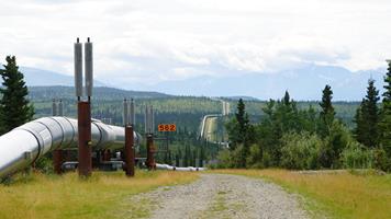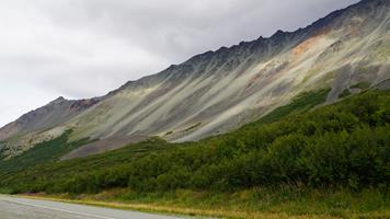 drizzling. The Alaskan oil pipe line also follows highway 4 which we could see