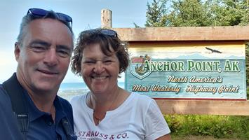 Was für ein Traumwetter zum Aufstehen bei rund 17 Grad. Nach zwei Nächten im Steller Inn in Seward, hiess es mal wieder packen. Da wir heute ein paar Meilen vor uns hatten, fuhren wir um acht Uhr los. Wie gewohnt erst mal was frühstücken und noch was kaufen für unser Picknick unterwegs. Die Fahrt führte uns erst nördlich bis zur Verzweigung, wo es dann nach Homer ging. Die Landschaft, die Berge, die Seen und dann noch das Meer war traumhaft bei diesem Wetter. Vorbei an Soldotna, einen Abstecher nach Kenai und weiter nach Ninilchik, ebenfalls ein kleiner Ort direkt am Meer. Hier hatte man einen tollen Blick auf die Berge vom nahegelegenen Lake Clark Nationalpark. Einige Meilen weiter erreichten wir den westlichsten Highway Point Nordamerikas bei Anchor Point. Gegen 16.00 Uhr konnten wir bereits schon Homer sehen, unser Ziel für heute. Erst bezogen wir unser Zimmer in eine B&B. Wir wurden freundlich empfangen und mit “viel” Informationen zugedeckt über Homer, was wir da alles machen können. Nur, dass wir knapp zwei Tag hier waren! Wir fuhren zum Homer Spit, dem südlichsten Teil des Ortes. Hier genossen wir das Meer, den Wind und die Sonne bei einem guten Nachtessen. Homer war für uns der schönste Ort auf unserer Reise. We awoke again to wonderful weather and 17C at 7.00am. After 2 nights in the Steller Inn in Seward it was time to enjoy on. As we had several miles ahead of us today we set off at 8.00am. Breakfast and picked up something for our picnic lunch then we hit the road. We drove north to the turn off for Homer which then took us south west. The countryside, the mountains, the lakes and finally the sea was delightful particularly as the weather was so good. We passed through Soldotna and made a short detour to Kenai City and onto Ninilchik, a small town on the coast with good views of Lake Clark National Park. A few miles on at Anchor Point the most westerly highway in the United States. We reached Homer at around 4.00pm. We checked into our B&B where we we given lots of information of what to do. I think we'll need a week! Unfortunately we are only here today and tomorrow. We drove out to Homer Spit where we enjoyed the sea, wind and sunshine. Had to be Halibut for dinner as this is the Halibut capitol apparently. Homer is one of the prettiest places we've seen here. |