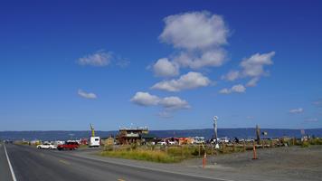 Um 8.30 Uhr machte der Hausherr uns ein Frühstück. Wir waren erst etwas erstaunt, doch dann mussten wir sager, dass es sehr fein war. Es gab Crepes mit Pfirsichen aus Kalifornien. Wir verabschiedeten uns und erkundeten noch etwas den schönen Ort Homer. Oberhalb von Homer gab es noch einen schönen Viewpoint, wo man eine tolle Sicht über Homer und den Spit hatte. Nach dem Mittag fuhren wir zum Flugplatz von Homer. Natürlich wollten wir auch einen Flug machen mit einer kleinen Maschine in Alaska. Bei der Smokey Bay Air buchten wir einen Flug zum Lake Clark Nationalpark. Der Flug dauerte rund eine Stunde mit der Cessna 206. Das Wetter war top bei rund 25 Grad und auch die Sicht war toll. Da es im N.P. keine Landebahn gab, wird hier am Strand gelandet. Wir nahmen unsere Rucksäcke und machten uns zu Fuss etwas ins Landesinnere. Uns bot sich eine wunderschöne Kulisse der wilden Natur. Zurück am Strand entdeckten wir plötzlich Bären in der Ferne. Später zottelte dann ein Braunbär auf der anderen Seite des Baches an uns vorbei. Da ratterten dann alle Fotoapparate auf hochtouren! Später ging es dann auf den Rückflug, aber nicht auf dem direkten Weg. Da wir so super Wetter hatten umflogen wir den 3053 m hohen Vulkan Iliamna. Es war atemberaubend die Farben und die Gletscher um den noch aktiven Vulkan. Um 19.00 Uhr landeten wir sicher in Homer. Was für ein Erlebnis. Dies wird uns noch lange in Erinnerung bleiben. Da dieser Ausflug nicht so geplant war und wir unser Hotel in Anchorage bereits gebucht haben, mussten wir noch am selben Abend zurück fahren. Also machten wir uns auf die rund 230 Meilen Strecke. Da viele Strassenarbeiten nachts stattfanden, hatten wir dann auch da und dort noch etwas Wartepausen. Wir erreichten unser Hotel in Anchorage um zwei Uhr morgens. Man waren wir froh ins Bett zu kommen nach so einem Tag. At 8.30am the B&B owner prepared our breakfast. Peach filled pancake and crispy bacon. The peaches come by lorry from California and it takes back fish. We said goodbye to our hosts and set off to explore some more of Homer. There is a road over the top of Homer with some good views over the town and the bay. After lunch we drove to Homer airfield to Smokey Bay Air where we had booked a flight to Lake Clark National Park which is not reachable by road. The flight was a out 1 hour in a 6 seat Cessna 206. The weather was wonderful and about 25C. There is no runway in the park so we landed on the beach. We picked up our rucksacks and headed inland. We were greeted by wonderful scenery. Back on the beach we suddenly spotted bears in the distance. Later a Brown Bear strolled by on the other side of the stream. After 3 hours in the park we took off again. Our pilot flew round an active volcano called Iliamna which is 10,000 feet high. It was breathtaking. The colours and the glaciers. At 7.00pm we landed back in Homer. What an experience. As this excursion was not planned we now faces a 230 mile journey up to Anchorage. There were a lot of roadworks on the way with long delays and slow traffic so it took us longer than expected. It was 2.00am before we reached our hotel. Gladly we sank into bed. |