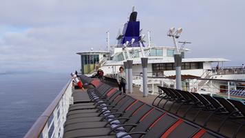 Am heutigen Tag gab es keinen Ausflug, denn wir waren den ganzen Tag auf See. Wir hatten alle Zeit der Welt das Schiff zu erkunden. Auf unserem Balkon machten wir es uns gemütlich und schrieben unsere Reiseberichte. Gegen Abend, bei einem Drink auf dem Deck, genossen wir wieder einen herrlichen Sonnenuntergang auf hoher See. Today was a sea day so we took the time to get to know our new home for the week. We then made ourselves comfortable on our balcony to write our journal. We enjoyed a lovely sunset on the deck with a drink. |