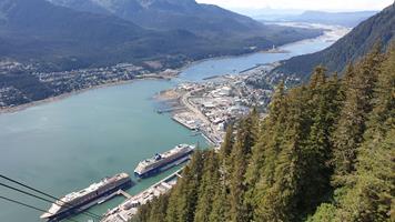 Um genau 06.00 Uhr doggten wir in Juneau an. Da wir früh wach waren und das Port auf unserer Seite war, konnten wir das Anlegen beobachten mit einem tollen Blick auf den kleinen Ort. Der Ort Juneau liegt ganz im Norden der Inside Passage und ist die Hauptstadt von Alaska. Nach dem kurzen Regen, ging es dann um 10.00 Uhr auf unseren Ausflug mit dem Bus zum Mendenhall-Gletscher. Auch dieser hat an Grösse verloren in den letzten Jahren. In der Zwischenzeit hatten wir wieder tolles Wetter. Vom Parkplatz aus machten wir einen kurzen Spaziergang zum nahegelegenen Nugget Falls. Ein wahres Paradies um Fotos zu machen. Anschliessend fuhren wir zur Salmon Bake. Hier gab es frischen Alaska Lachs vom Grill. Mmhhh war das fein….. Nach dem Mittag waren wir zurück am Port, wo wir dann noch viel Zeit hatten um selber was zu unternehmen. Wir fuhren mit der Tram Way (Seilbahn) auf ihren Hausberg. Hier unternahmen wir eine kleine Wanderung und genossen die Aussicht über Juneau. Auf dem Rückweg zum Schiff, bummelten wir noch etwas durch den Ort und schauten uns den einen oder anderen Laden an. Hat man zwei drei gesehen, kannte man alle anderen. Um 21.30 Uhr verliessen wir den Ort Juneau.