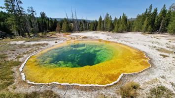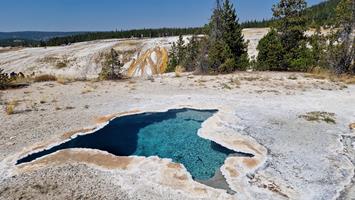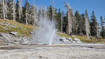 Heute gingen wir früh los, denn auf uns wartet der erste richtige Höhepunkt unserer Reise der Yellowstone NP. Erst machten wir einen kurzen Stopp in Jackson und weiter zum Grand Teton NP. Das Wetter zeigte sich weiter von seiner besten Seite. Beim Parkeingang waren wir dann schon etwas erstaunt, denn wir rechneten mit viel mehr Touristen und Autos. Dies konnte uns nur recht sein. Gegen Mittag erreichten wir unsere Unterkunft unmittelbar beim bekannten Old Faithful Geysir. Es ist der Lieblingspark von Carol. Wir schnürten unsere Schuhe und machten uns auf den Weg im Park, wo es viel zu sehen gab. Der Geysir machte sich etwa immer alle 90 Minuten bemerkbar. Jedes Mal ein faszinierendes Schauspiel. Wir hatten das Glück, dass der Geysir genau zum Sonnenuntergang ausbrach, was schon sehr speziell war. Nach einen eindrucksvollen Tag ging es dann zu unserer Lodge unweit des Geysirs. Today we started early, because the first real highlight of our trip, Yellowstone NP, was waiting for us. First we made a short stop in Jackson and then on to Grand Teton NP. The weather continued to show its best side. At the park entrance we were a bit surprised, because we expected a lot more tourists and cars. This could only be a good thing for us. Around noon we reached our accommodation right next to the famous Old Faithful Geyser. It is Carol's favourite park. We laced up our shoes and made our way around the park, where there was much to see. The geyser made its presence felt every 90 minutes or so. A fascinating spectacle every time. We were lucky that the geyser erupted right at sunset, which was very special. After an impressive day, we went to our lodge not far from the geyser. |