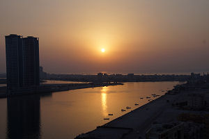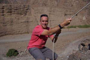 Nach einem ausgiebigen Frühstück am Buffet, verliessen wir Fujairah in Richtung Norden der Küste entlang. Noch ein paar Fotos in Fujairah und wir fuhren zu unserem erst Stopp. Wie immer in den Emiraten ist alles sehr spärlich angeschrieben, so dass wir auch den Wasserfall im Wadi Wurayah suchen mussten. Wir tuckerten die zwölf Kilometer gemütlich in die Berge und genossen die Landschaft. Noch ein zwei Kurven und plötzlich war die Strasse zu Ende und kein Wasserfall zu sehen. Doch es war so ruhig, das man doch etwas plätschern hörte unten im Wadi. Wir bemerken ein Seil für den Abstieg ins Wadi, doch Carol zog es vor oben zu bleiben. Im Wadi unten angekommen und noch ein paar Schritt und man konnten den „kleinen“ Wasserfall sehen. Weiter der Küste entlang erreichten wir die Stadt Diba, welche einen emiratischen und einen omanischen Teil hatte. Auf dem Rest der Strecke von Diba nach Ras Al Khaimah, unserm heutigen Ziel, gab es nicht viel zu sehen ausser einigen Beton- und Zementwerken. Im Hotel angekommen kühlten wir uns erst mal ab im Poll auf dem Dach des Hotels und anschliessendem Drink – mit Schuss;-) So um halb sechs bewunderten wir den Sonnenuntergang über dem Meer ebenfalls vom Dach des Hotels. Später ein gutes Nachtessen und ab ins Bett! |