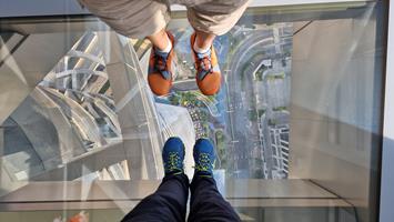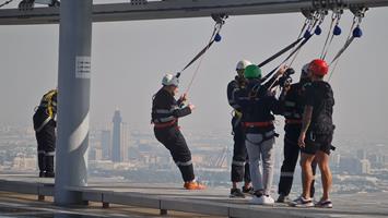 Heut war für mich dann ein doch etwas spezieller Tag. Wir fuhren zum The Address Sky View Tower unweit vom Burj Khalifa dem höchsten Gebäude der Welt. Mit dem Lift ging es auf eine Höhe von 219m. Nun stieg der Puls so langsam etwas an, denn ich musst mich umziehen, bekam Sicherheitsgurte umgeschnallt und einen Helm auf den Kopf. Meine GoPro wurde auf dem Helm befestigt und unsere Handys wurde in ein spezielles Etui getan, um es dann mitzunehmen. Nach dem wir gesichert wurden und die letzten Instruktionen erhielten ging es dann los auf den Sky Walk. Ein Walk auf einem Gitterrost, ohne Geländer und dies auf 219m. Es war atemberaubend und dann noch diese Aussicht….. Es gab da natürlich noch den Glas Walk für die etwas weniger Mutigen. Anschliessend hielten wir uns noch etwas in der Mall of Dubai auf beim Burj Khalifa. Später gingen wir noch zum Museum of the Future. Ein eindrückliches Bauwerk. Leider waren zu diesem Zeitpunkt schon alle Tickets weg. Na, dann halt das nächste Mal.