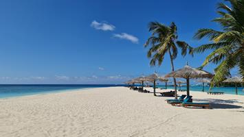 Am frühen Nachmittag machten wir uns auf den Weg zum Flughafen und gaben unser Auto, wie immer bei Sprenger, ab. Das Check In verlief schnell und ohne Probleme. Etwas später begaben wir uns dann Terminal E zum Gate 53, wo der Edelweiss Airbus A340-300 stand, welcher uns dann nach Male brachte. Pünktlich um halb neun Uhr abends ging es los auf den rund neuneinhalbstündigen Flug. Der Flug war nicht ganz ausgebucht. Kurz nach neun Uhr morgens landeten wir nach einem tollen Anflug über die Atolle und Sicht auf die Hauptstadt Male sicher auf den Malediven. Nachdem wir das Gepäck hatten, ging es zum Schalter für den Weiterflug nach Veligandu. Koffer abgegeben, ging es weiter mit dem Bus zu den Wasserflugzeugen. Der Flug dauerte rund 20 Minuten und das Wetter war schön, so dass wir die vielen Inseln sehen konnten, die wir überflogen. Auf Veligandu wurden wir herzlich empfangen und zu unserem Beach Bungalow Jacuzzi Nummer 119 gebracht. Noch ein paar Informationen und schon ging es zum Mittagessen. Anschliessend richteten wir uns ein und erkundeten die Insel. Hier hat sich in den letzten Jahren sehr viel verändert, besonders die vielen neuen Wasserbungalow. Early afternoon, we made our way to the airport and dropped off our car at Sprenger, as usual. Check-in was quick and without any problems. A little later, we went to Terminal E to Gate 53, where the Edelweiss Airbus A340-300 was waiting to take us to Male. Punctually at half past eight in the evening, we set off on the nine-and-a-half-hour flight. The flight was not fully booked. Shortly after nine in the morning, we landed safely in the Maldives after a wonderful approach over the atolls and a good view of the capital Male. After we collected our luggage, we went to the counter for the onward flight to Veligandu. Suitcases dropped off, we continued by bus to the seaplanes. The flight took about 20 minutes and the weather was nice so we could see the many islands we flew over. On Veligandu we were warmly welcomed and taken to our Jacuzzi Beach Bungalow number 119. Some more information and we went for lunch. Afterwards we settled in and explored the island. A lot has changed here in the last few years, especially the many new water bungalows. |