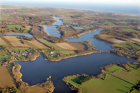 Ostanglien (engl. East Anglia) ist eine Region im Osten Englands, die sich zwischen London, dem Mündungsgebiet der Great Ouse und des Welland – genannt The Wash – sowie dem Mündungsgebiet der Themse erstreckt. Es umfasst die Grafschaften Cambridgeshire, Norfolk und Suffolk sowie Teile von Lincolnshire; gelegentlich wird auch Essex (ganz oder nur dessen nördlicher Teil) dazugezählt. Die Bevölkerung lebt überwiegend in kleinen ländlichen Dörfern, die beliebte Urlaubsziele für die Londoner Großstädter darstellen. Die Gegend ist sehr flach und besteht größtenteils aus Moor, Niedermoor und anderen moorähnlichen Landschaften. Klimatisch ist das Gebiet im Verhältnis zum ozeanischen Klima der Britischen Inseln kontinental beeinflusst; man findet dort Sonnenblumenfelder ebenso wie Lavendel- und Weinanbau. Um den Ort Thetford (im Zentrum Ostangliens) herum erstrecken sich größere zusammenhängende Waldgebiete - unter anderem der so genannte King's Forest. Die Landschaft steigt im Bereich dieser Wälder bis auf ca. 150 Meter über dem Meeresspiegel an. Zur Nordseeküste hin befinden sich große Schwemmebenen auf Meereshöhe, die so genannten Norfolk Broads, die heute Teil des Broads National Park sind. Diese Ebenen sind von einem großen Wasserstraßennetz durchzogen und werden häufig von Erholungssuchenden zur Bootsfahrt genutzt. Bemerkenswert sind dort noch bestehende historische „Gezeitenmühlen“. East Anglia is a region in the east of England, stretching between London, the Great Ouse and Welland estuaries - called The Wash - and the Thames estuary. It includes the counties of Cambridgeshire, Norfolk and Suffolk, and parts of Lincolnshire; occasionally Essex (all or just its northern part) is also included. The population lives mainly in small rural villages, which are popular holiday destinations for London's city dwellers. The area is very flat and consists largely of moorland, fen and other bog-like landscapes. Climatically, the area has a continental influence relative to the oceanic climate of the British Isles; sunflower fields can be found there as well as lavender and vineyards. Around the town of Thetford (in the centre of East Anglia), there are large contiguous woodlands - including the so-called King's Forest. The landscape rises to about 150 metres above sea level in the area of these forests. Towards the North Sea coast there are large alluvial plains at sea level, the so-called Norfolk Broads, which are now part of the Broads National Park. These plains are criss-crossed by a large network of waterways and are often used by recreational boaters. Remarkable there are still existing historic "tide mills". |
