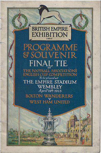 The first Wembley FA Cup Final, played on 28th April 1923, was marked by disorderly scenes unparalleled in the history of football. Before the match a massive crowd outside the stadium rushed the gates, burst the barriers and swarmed on to the pitch. Kick-off was delayed for 45 minutes as mounted police, with PC George Scorey on "Billy" particularly visible, encouraged people to move behind the touchlines. Bolton beat West Ham 2-0 and the first Wembley goal was scored after just two minutes by David Jack. It was estimated that 200,000 fans had squeezed into Wembley and Cup Finals were made "all ticket" after that.