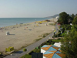 Natur mit allen nur denkbaren Vorzügen bedacht. Der Umweltfreundlichkeit gilt ein Hauptaugenmerk. Hier finden Sie einen weiten, breiten, feinsandigen und stets sauberen Strand, kristallklares Wasser und reine Luft. Erholsam und erfrischend, wie ein Bad im Meer, ist auch ein Spaziergang im nahen Baltata-Wald. Allein schon das Klima ist - auch in Albena - Grund genug für einen Urlaubsaufenthalt. Im Sommer liegt die Lufttemperatur zwischen 23 und 28 °C, die Wassertemperatur bei 25 °C. Kann man sich es besser noch wünschen? Albena, jung und attraktiv, zieht vor allem Jugend und Familien an. Sportanlagen und Angebote für Aktivurlaub sind reichlich vorhanden. Ganz Wagemutige können sich mit Motordrachen zum Rundflug in die Lüfte erheben oder am Gleitfallschirm dahinschweben - über Land, Strand und Meer. Zur Unterhaltung der Kleinen gibt es viele Kinderprogramme, und für die Gesundheit bietet Albena eine reiche Auswahl an balneologischen Therapien. In Albena findet man Unterkunft für jeden Geldbeutel und jeden Geschmack. Das Angebot reicht vom Viersterne-Hotel, über Drei- und Zweisterne-Hotels, bis zu Bungalows und Camping. Die Restaurants am Strand, in den Hotels und die Lokale mit rustikalem Flair bieten nationale wie internationale Küche sowie frischgefangenen Fisch und andere Meeresfrüchte. Natürlich kommen auch Liebhaber der Folklore in Albena nicht zu kurz. |