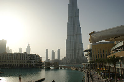Der Burj Khalifa wurde von der Projektgesellschaft Emaar Properties nach Plänen des Architekten Adrian Smith gebaut. Er ist seit März 2008 das höchste Bauwerk der Welt, besitzt weltweit die meisten Stockwerke und auch das höchstgelegene nutzbare Stockwerk. Die Bauarbeiten begannen im Jahr 2004, im Januar 2009 wurde die Endhöhe von 828 Metern erreicht. Das Gebäude wurde am 4. Januar 2010 eingeweiht. Der Burj Khalifa ist mit 828 Metern Gebäudehöhe, 830 Metern bis Antennenspitze und 189 Stockwerken sowohl das höchste bis heute errichtete Gebäude als auch das höchste Bauwerk der Welt. Der Burj Khalifa ist das Gebäude mit der höchsten genutzten Etage, hat das höchste Dach und die dritthöchste Aussichtsplattform. Außerdem überragt der Burj Khalifa den Taipei 101 (509 m) als bisher höchstes Gebäude (Höhe der Gebäudestruktur), den Willis Tower (527 m) (ehemals: Sears Tower) als bisher absolut höchstes Gebäude (Höhe bis Antennenspitze) und den CN Tower (553 m) in Toronto als bisher höchstes nicht abgespanntes Bauwerk. Damit gehen die genannten Rekorde des höchsten Bauwerks zum ersten Mal seit Errichtung des Empire State Buildings 1931 wieder an ein Gebäude. Der Burj Khalifa ist zudem das welthöchste Gebäude, das auch zu Wohnzwecken genutzt wird. Am 17. Januar 2009 erreichte der Burj Khalifa seine Gebäudeendhöhe von 828 Meter. Die Gesamthöhe inkl. Geländer und Leuchtsignalanlage auf der Turmspitze beträgt 830 Meter. Damit lässt sich die Gebäudespitze bei klarer Sicht aus über 100 Kilometern Entfernung erkennen. Die Investoren hielten über lange Zeit, bis zur Eröffnung am 4. Januar 2010 sowohl die Höhe des Turms als auch die Anzahl der Stockwerke geheim. |