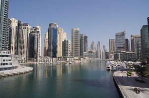 Heute ist wenig Autofahren angesagt. Wir brachten Irene und Dani zum Strand von Jumeirah, wo sie die Sonne und das Meer genossen für ein paar Stunden. Carol und ich schauten uns in Dubai um. Vor acht Jahren waren wir in unseren Flitterwochen schon mal in Dubai und wollten sehen was sich da so verändert hat. Wir waren sehr erstaunt. Wo einst das Sheraton Hotel alleine am Strand war ist nun ein grosser Stadtteil entstanden, das Dubai Marina, mit vielen Wolkenkratzer. Auch des Hard Rock Cafe, welches nicht mehr in Betrieb ist, ist umzingelt von Türmen. Die Gegend ist nicht mehr wieder zu erkennen. Gegen Mittag fuhren wir zum Dubai Creek Golf Club, welchen wir bis dahin noch nie gesehen haben. Am späteren Nachmittag, nach dem wir Irene und Dani vom Strand abgeholt haben, fuhren wir zum Creek und mit dem Wassertaxi auf die andere Seite von Dubai. Hier befindet sich der Old Souk und auch der Gold Souk. Einkaufen war angesagt.