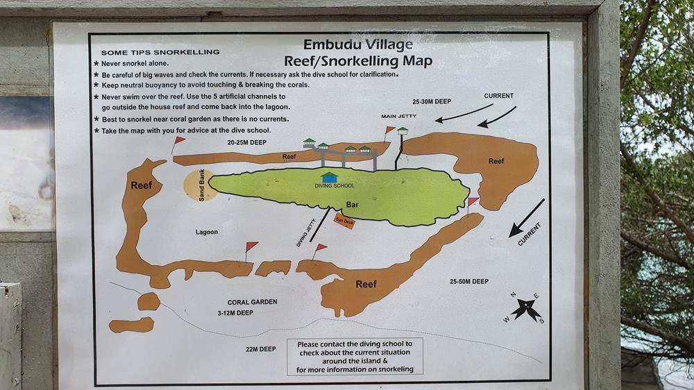 Die Tauchbasis war in Betrieb, aber es wurden zurzeit keine Kurse angeboten. Tauchen war kein Problem. Das Haus Riff für Schnorchel bot ein paar Einstiegsstellen. Leider gab es nicht so viele Fische und grösseres, wie Haie oder Schildkröte zu sehen wie z. B. auf Helengeli. Das Meer war sehr unruhig, was zur Folge hatte, dass dadurch die Sicht beeinträchtigt war. Aber das ist Natur und die kann man bekanntlich nicht ändern oder beeinflussen. Die Touristen hier stammen aus Tschechien, Italien, Ukraine, Deutschland und wir aus der Schweiz. The dive centre was in operation, but no courses were offered at that time. Diving was no problem. The house reef for snorkeling offered several entry points. Unfortunately there were not so many fish and bigger ones like sharks or turtles to see as for example on Helengeli. The sea was very choppy, which had the consequence that visibility was impaired. But this is nature and as we all know you cannot change or influence it. The tourists here came from the Czech Republic, Italy, the Ukraine, Germany and we from Switzerland. |