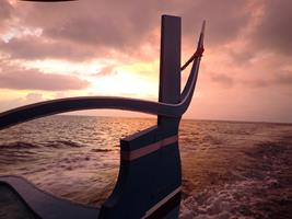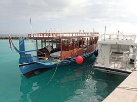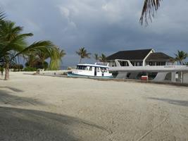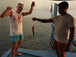 Täglich fährt ein Boot um 17.00 Uhr zum Nachtfischen «für Touristen» zum nahegelegenen Riff. Die Fahrt dauert rund zehn Minuten. Kleine Instruktion und schon kann man sein Glück versuchen einen Fisch zu fangen. Ich konnte gleich der zwei fangen, welchen wir dann auch gleich wider die Freiheit gaben und sie zurück ins begaben. Auch andere hatten Erfolge zu vermelden. So nach Sonnenuntergang ging es dann wider zurück zur Insel. Dieser kleine Ausflug ist für einmal im All Inklusive Packet inbegriffen. Every evening a boat leaves at 5:00pm to take visitors fishing on the nearby reef. It takes about 10 minutes to reach the fishing point. After a short demonstration everyone can try their luck at catching a fish. Rene managed to hook two which after a short inspection got the chance to swim another day. After watching the sunset the boat returns to the Island. |