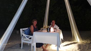 Da wir bereits Online eingecheckt haben via OBLU-App, wurden wir gleich nach der Ankunft zu unserem Bungalow 238 gebracht, welches wir schon im 2018 hatte. Auf Helengeli läuft neu nun viel über ihre eigene App, wie z. B. Buchungen für Spa, Grill oder auch Ausflüge. In unserer OBLU Helengeli App waren bereits sechs Termine vermerkt, dreimal Spa, zweimal Grillabend und einmal Nacht Fishing. Diese waren alle gratis. Das Nacht Fishing haben wir storniert, da wir dies schon letztes Mal gemacht hatten. Im Verlauf der ersten Woche entdeckten wir dann einen neuen Eintrag im Kalender "Executive Chef's Privat BBQ". Dies ist eine Einladung für Gäste, die schon öfters hier waren. Das Wetter zeigte sich von der bessten Seite. Schön und warm, wie es doch sein sollte. Doch dies änderte sich dann später etwas. Am späten Mittwochnachmittag dann die ersten Gewitter und am Donnerstag wurde es dann am Nachmittag wieder besser. Über die Insel und die Infrastruktur selbst werde ich in diesem Bericht nicht weiter eingehen. Dies könnt ihr gerne im Bericht von 2017 nachlesen, denn es hat sich da kaum was geädert. Wir erkundeten jeden Tag beim Schnorcheln das Haus Riff und hielten Ausschau nach kleinen und grossen Fischen, wie zum Beispiel Haie, Schildkröte, Adler/Stachelrochen, Muränen und viele kleinere bunten Fische. Wir liessen es uns auch gut gehen im Spa mit Massagen. Wir lernten wieder tolle Leute kennen aus Hamburg und der Schweiz, mit den wir zum Schnorcheln gingen und nette Abende in der Bar verbrachten. Während unseres Aufenthalts, waren wir die einzigen Repeat Guest. In unserer Sprache nennt man dies Wiederholungstäter. Uns wurde ein wunderbares BBQ am Strand mit eigenem Koch offeriert. Die Grilladen waren top und es gab so viel, dass wir schon fast platzten. Aber fein war es. As we had already checked in online via the OBLU app, we were taken to our bungalow 238, which we already had in 2018, straight away.. At Helengeli, much is now done via their own app, such as bookings for the spa, barbecue or excursions. In our OBLU Helengeli app there were already six dates noted, three times spa, twice BBQ and once night fishing. These were all free of charge. We cancelled the night fishing as we had already done this last time. Then during the first week we discovered a new entry in the calendar "Executive Chef's Private BBQ". This is an invitation for guests who have been here before. The weather was at its best. Beautiful and warm, as it should be. But this changed a bit later. Late on Wednesday afternoon the first thunderstorms and on Thursday morning. However it got better again in the afternoon. I will not go into more detail about the island and the infrastructure in this report. You can read about that in the report from 2017, because there was hardly any change. We explored the house reef every day while snorkelling and looked out for small and large fish, such as sharks, turtles, eagles/stingrays, moray eels and many smaller colourful fish. We also enjoyed the spa with massages. We met great people from Hamburg and Switzerland, went snorkelling with them and spent nice evenings in the bar. During our stay, we were the only repeat guests. We were offered a wonderful BBQ on the beach with our own chef. The barbecue was top and there was so much that we were almost bursting. Delicious! |