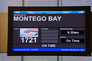 Wie immer wenn man in die USA fliegt, gibt es kleinere Probleme mit der Zeitverschiebung. Um vier Uhr waren wir bereits wach und um fünf hatten bereits unseren ersten Kaffee. Um sieben fuhren wir wiederum mit dem Hotelbus zum Flughafen wo wir dann auf den Abflug warteten nach Montego Bay Jamaika. Nach knapp eineinhalbstunden Flug erreichten wir Jamaika. Das Wetter war ziemlich bewölkt und ein paar Tropfen Regen und dies bei 26 Grad. Nach dem wir das Gepäck hatten, holten wir unseren Mietwagen, ein Suzuki Vitara, und fuhren zu unserem ersten Hotel wo wir dann die restlichen Unterlagen erhielten. Nach einem kleinen Imbiss fuhren wir in die Stadt Montego Bay. Hier war gerade der grosse Markt im Gange. Plötzlich klopfte ein Junge auf seinem Fahrrad an die Scheibe und sagte, dass wir ihm folgen können. Er führte uns durch die Stadt und den Markt. Dies mit dem Auto, was dann Millimeterarbeit erforderte. Es kam uns vor, als würden wir an der Luzerner Fastnacht durch die Altstadt fahren. Nach dem Essen und einem Schlummertrunk fielen wir dann müde ins Bett. As usual when we fly to the USA we were up early. By 5am we had drunk our first coffee. At 7 we headed off back to the airport on the shuttle bus for our flight to Montego Bay. A one and a half hour flight brought us to Montego Bay (MoBay for short). The weather was cloudy and there were a few drops of rain but with temperatures of 26C. Bit of a difference to the -10C at home. After we collected our luggage we picked up our rental car and drove to Tobys Resort - our first hotel where the rest of our documents were waiting. After lunch we headed into Montego Bay downtown - suddenly a young man on a bicycle knocked on the window and told us he worked for our rental company and would show us the way through the crowded market by car. This proved to be very eventful and needed precise millimetre driving - it was like driving through the Luzern Carnival or even the Notting Hill Carnival when it's in full swing! After dinner we headed off to bead very tired to contemplate our first Jamaican impressions. |