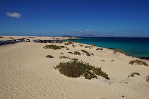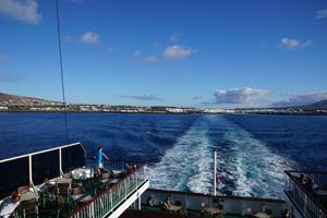 Um 08.12 Uhr ging der Bus vor unserem Hotel nach Playa Blanca. Bei der Haltestelle beim Hafen stiegen wir aus und gingen zum Landungssteg, wo das Fährschiff stand, welches uns nach Fuerteventura brachte. Die Überfahrt dauerte nur 30 Minuten. Nach einem kurzen Fussmarsch in die Stadt Corralejo, mieteten wir uns ein Auto um ein Teil der Insel zu erkunden. Vorbei an den herrlichen und bekannten Sanddünen fuhren wir via Porto del Rosario ins Landesinnere. Über viele Hügel und eintöniges Land erreichten wir Antigua und weiter den bekannten Ort Betancuria. Unterwegs machten wir noch Halt auf einem Aussichtpunkt mit toller Aussicht über die Insel. Auf dem Rückweg machten wir noch halt in La Oliva. Es sind alles kleine Orte wo wirklich nichts los ist. Bevor wir wieder in Corralejo waren, machen wir noch einen Abstecher an die Westküste zum kleinen Ort El Cotillo mit Klippen und Stränden und zu guter Letzt noch ein paar Fotos bei den Sanddünen von Fuerteventura. Am Hafen, in einem Strandrestaurant nahem wir gemütlich einen Apéro, bevor es dann wider zurück ging nach Lanzarote. |